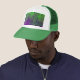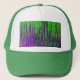 Boné de beisebol que caracteriza a arte abstracta verde e roxa de Ponce.