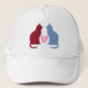 Gatos vermelhos e azuis se encarando com um coração cor-de-rosa no meio.