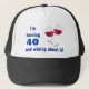 " Eu estou girando 40 e wining sobre ele" é o verbage neste chapéu. O gráfico é dois vidros do vinho tinto. Este chapéu pode ser personalizado para ter o nome de uma pessoa e a idade pode ser mudada para caber sua necessidade.