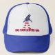 Patriótico americano vermelho branco e azul Sasquatch Pé Grande e bandeira vermelha e azul americana e se agachar, faça o texto dos EUA.