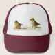Este chapéu caracteriza um pinho Siskin que pareça falar a um goldfinch masculino embora tenha uma semente de girassol em sua boca! Estão estando na neve em um dia de inverno ensolarado que pareça ser iluminado por uma luz dourada.