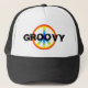 chapéu negro liso com GROOVY nele e em um sinal de paz do arco-íris