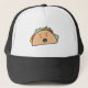 Ilustração de um taco zangado em um boné de caminhoneiro.