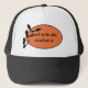 Chapéu de caminhoneiro de Halloween mostrado em preto e branco com impressão de morcegos de Halloween. Comprar como está ou personalizar.