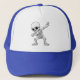 Um esqueleto de desenho animado atinge uma pose de dança de dança de tendências neste trabalho de arte de Halloween brincalhão, Halloween Skeleton Dabbing Trucker Hat,