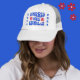 Retro Harris & Walz vermelho, branco e azul do Chapéu do Caminhoneiro Branco. Flores vermelhas e 2024 em ambos os lados. 2024 é editável.