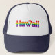 Trucker Hat com sinal de texto " Havaí" em cores da LGBT (lésbica, gay, bissexual e pessoas transexuais), bandeira do orgulho arco-íris, amor do gay do orgulho estatal americano lgbtqiap+ design
