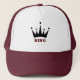 Texto original branco e marrom do rei Imagem coroa Chapéu de Caminhoneiro. Um boné de caminhoneiro, também conhecido como chapéu de caminhoneiro ou boné de malha, é um tipo de baseball que se caracteriza pelo seu design único e sua construção. Painel frontal: o painel frontal de um boné de caminhoneiro é frequentemente feito de espuma ou de outro material estruturado, dando-lhe uma aparência elevada e ligeiramente rígida. Este painel frontal oferece uma aparência distinta e serve como uma canvas para vários designs, logotipos ou trabalhos de arte. Painel traseiro da malha: Um dos recursos definidores de um boné do caminhoneiro é o painel traseiro da malha. Ao contrário dos bonés tradicionais de baseball, que geralmente têm uma tecido sólida de trás, os trucker caps incorporam uma malha de trás feita de material respirável. Essa malha ajuda a aumentar a ventilação, fazer o boné mais confortável para vestir em tempo quente. Fechamento ajustável: a maioria dos trucker caps apresenta um fecho ajustável na parte traseira. Este fecho pode ser feito de armadilhas de plástico, de plástico ou de um mecanismo semelhante que permita ao utilizador personalizar o ajustado do boné até ao tamanho da cabeça. Brim Curvo: Como outros bonés ao estilo do beisebol, os trucker caps têm um brilho curvo que ajuda a proteger os olhos do sol e adiciona ao estilo geral do boné. Designs e logotipos: o painel frontal de um boné de caminhoneiro frequentemente apresenta vários designs, logotipos, texto ou gráficos. Esses elementos podem ir desde logotipos de empresas e emblemas de equipes esportivas até frases humorísticas e referências de cultura de pop. Os designs são tipicamente impressos, bordados ou afixados por meio de patches.