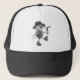 Este chapéu divertido com impressão de geologia apresenta um geólogo de desenho animado alegre e despreocupado em um estilo preto e branco retrô dos anos 1930-1940. Com seu martelo de geólogo na mão e sua lupa ao redor do pescoço, ele está pronto para um dia divertido no campo.