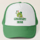 Características de design do dia deste St Patrick um trevo bonito dos desenhos animados que vestem um derby verde e que acenam uma bandeira irlandesa e o subtítulo de "irlandês Cincinnati" no grande texto verde.