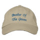 Boné de beisebol ajustável básico da Alternative Apparel com bordado personalizado em khaki com o texto "Irmão do Noivo" em tipografia de letra e design gráfico digital em azul marinho pela loja TheFabricSeal sob encomenda na Zazzle.com #ZazzleMade https://www.zazzle.com/store/thefabricseal TheFabricSeal Original.