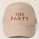Este camionista de solteira "da festa" que apresenta uma fonte com tema retroativo em laranja e rosa. Ordene o chapéu branco correspondente, "esposa do partido'' para um evento coeso de solteira. As cores são editáveis! Clique em 'editar design' para criar suas próprias cores.