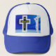 A crucificação com um pôr do sol e as palavras Jesus salva. Uma foto cristã.