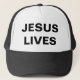 Na moda e camionista de fé que inclui a frase "Jesus Vive". Um acessório perfeito para compartilhar ousadamente a mensagem da ressurreição do Cristo e sua crença onde quer que você vá.