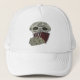 Jogador de pôquer mostra um esqueleto tocando uma mão de pôquer com cartas presas na frente do rosto.