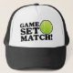 Deixado todos saiba que você joga o tênis ou que o tênis é sua paixão com este o design retro-inspirado que lê, "jogo, grupo, o fósforo!" e caracteriza um gráfico de uma bola de tênis.