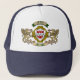 O chapéu de caminhoneiro acima apresenta o escudo irlandês Joyce, trava dentro a cruz Celta, com aletas em ambos os lados. Você pode personalizar a fita superior para a ortografia correta de seu nome ou o que você quiser que sejam esses ajustados! Mostre seu orgulho irlandês nos festivais Celta, Dia de São Patrício ou vista na próxima reunião ou reunião da sua família! Erin vai Bragh!