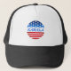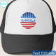 Kamala Harris USA Flag Custom Text Elections 2024 Trucker Hat. Para um design da campanha presidencial de Kamala Harris, um layout ousado e empoderador que combina tipografia e símbolos patrióticos para criar uma impressionante declaração visual. No centro da design, destaque o nome de Kamala Harris em grande e elegante tipografia. Use uma fonte moderna para transmitir uma sensação de pensamento avançado e progresso. Para aprimorar o apelo visual design, adicione um acabamento polido sutil com efeito de sombra, dando à tipografia um sentido de profundidade e dimensão. Esta abordagem não só põe em evidência o nome de Kamala Harris, como também garante que as cores e padrões da bandeira se sobressaem vibrantemente. Este produto tem como objetivo celebrar a candidatura de Kamala Harris com um forte talento patriótico, usando a tipografia e a bandeira dos EUA para criar uma poderosa declaração de apoio à sua campanha presidencial.