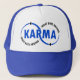 Karma - O que acontece volta ao redor (v2) Trucker Hat. O design artístico exibe a palavra "KARMA" em dois círculos sem fim com "O QUE VAI POR AÍ" e "VOLTA POR AÍ" curvos para formar seções dos círculos. As duas cores podem ser alteradas para sua preferência desejada editando o design. Faz o presente perfeito para aqueles que acreditam em Karma e em tratar bem os outros. Obrigado pelo apoio e pela visita à minha loja - UniquelyDistinct. Sinta-se livre para transferir este design em outros produtos do Zazzle.