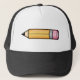 Este chapéu apresenta uma ilustração fofinha de lápis de desenho amarelo com uma borracha rosa no topo.