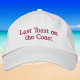 Top off your bachelorette weekend look with this chic “Last Toast on the Coast” embroidered white baseball hat. Featuring the phrase stitched in a beautiful pink script, this design adds the perfect feminine and coastal touch to your celebration style.