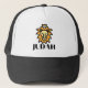 Este caminhoneiro que tem um design que mostra a palavra "Judah" em uma impressão com letras negras, em negros, mostrando uma imagem de estilo cartoon da cabeça de um leão com a coroa de um rei no centro neste tema de citação baseado na fé. Este chapéu é confortável, casual e ajustável de 17 a 24" com um excelente de 100% de espuma de nylon frente e de nylon para uso diário ou em qualquer ocasião especial.