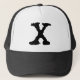 A letra X em uma fonte digitada granulada. Design preto e branco.