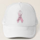 Boné branco com faixa rosa de reconhecimento de cancer, "Find the Cure", outubro