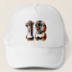 Apresentado em um design cor de laranja e preto é um logotipo de basquete doze, feito de bolas de basquete invertidas.