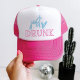 Este chapéu de caminhoneiro de despedida de solteira 'apenas bêbada' apresenta letras inspiradas em neon em rosa e azul. Combine este chapéu com o chapéu de noiva 'bêbada de amor' para um evento de despedida de solteira coeso. 💜 As cores são editáveis! Clique em 'editar design' para criar suas próprias cores.