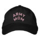 "Nosso boné ajustável da Mãe do Exército apresenta texto cor-de-rosa. Com certeza, mantém sua cabeça aquecida naquelas noites frias de inverno!"