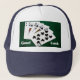Cinco cartas de jogo formando a mão real de pau. Este é o clube que usa a roupa real. É a mão de pôquer padrão mais alta. Chapéu de caminhoneiro. Você pode mudar ou excluir de forma independente duas palavras: Boa e Sorte. Boa sorte!