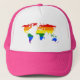 Chapéu de caminhoneiro com LGBT (pessoas lésbicas, gay, bissexuais e transexuais) mapa do mundo no arco-íris design, por pinkbrickroad