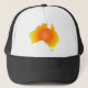 Uma versão ensolarada para o mapa australiano. Imagem em amarelo e laranja. Fundo azul em imagens selecionadas.