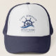 Chapéu azul e branco náutico com helm e ondas oceânicas. acessório de equipamento de excelente para um proprietário de iate ou qualquer marinheiro. Personalize acrescentando seu nome, seu nome de barco e a cidade que você coloca.