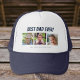 Este chapéu apresenta três quadros fotográficos para fotos de crianças ou pais. O texto azul escuro "Melhor Pai Nunca" aparece acima das imagens e o texto personalizado abaixo permite personalizar com nomes de crianças. Este é um Dia de os pais ou presente de aniversário perfeito para qualquer pai.