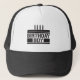 Bolo de aniversário escrito com o menino do aniversário escrito nele em um chapéu do camionista, de modo que todos possa ver quem é o menino do dia!