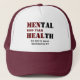 Mens Mental Health Trucker Hat. Um marrom motivacional e BONÉ branco do TRUCKER promovendo a saúde mental dos homens, e encorajando os homens a falar. A design mostra as palavras SAÚDE MENTAL combinada com os homens que falam saúde. Há um verso de script de espaço reservado baseado no Eclesiastes, que é PERSONALIZÁVEL, para que você possa personalizar com seu nome, organização ou texto de sua própria escolha. Isso seria um excelente a favor da venda ou da doação em conferências masculinas, conferências de saúde mental, superintendentes de saúde mental, organizações de saúde mental, etc. Outras cores disponíveis.