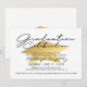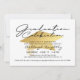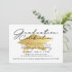 Convite moderno, na moda, festa de formatura com tipografia elegante escrita à mão e boné de formatura de folha de ouro metálico falso. ASSISTÊNCIA: para obter ajuda com a modificação/personalização do design, alteração de cor, transferência do design para outro produto ou, se você quiser coordenar itens, entre em contato com o designer ANTES DE ENCOMENDAR através da guia MENSAGEM de bate-papo Zazzle ou por e-mail em makeitaboutyoustore@gmail.com.