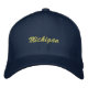 Mostre seu suporte com este boné em marinho com texto bordado amarelo.