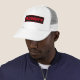 Personalizar adição de imagem Logotipo da empresa Fonte grande texto aqui Modelo elegante moderno membro de segurança unisex feminino preto / vermelho / Boné branco / Chapéu do basebol / Trucker.