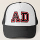 Chapéu de caminhoneiro "AD" com letras vermelhas e pretas