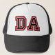 Chapéu de caminhoneiro "DA" com letras vermelhas e pretas