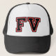 Chapéu de caminhão "FV" com letras vermelhas e negras
