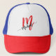 Chapéu personalizado de caminhoneiro monograma moderno. Altere a inicial e o nome. Deixe os quadrinhos na caixa de texto do nome para que você tenha um florescimento no final do nome.