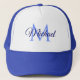 Letra Inicial Monogramada Modelo Unisex Elegante Trendy White E Royal Blue Trucker Hat.