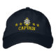 Um design feito sob encomenda do grupo do capitão ou do barco com navios náuticos roda, âncora e as estrelas com modelos feitos sob encomenda do texto para seu grupo, mudam facilmente a cor do motivo do texto e da âncora para serir sua cor do boné.