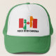 Boné canadense patriótico, na moda irlandês, de beisebol mostrando o contorno do mapa da IRLANDA combinado com o PAVILHÃO MAPLE LEAF do CANADÁ, com texto PERSONALIZÁVEL abaixo que lê A COMBINAÇÃO PERFEITA, que você pode personalizar adicionando seu nome ou criando seu próprio texto. Este Trucker Hat irlandês-canadiano constituiria um presente de excelente para aqueles que têm duas nacionalidades, ou ex-pats ou qualquer pessoa que celebra a dupla herança da Irlanda e do Canadá. Também um presente de excelente para Dia de São Patrício, Dia do Canadá e Mês Irlandês-Canadense em março.