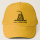 Não pise em mim o logotipo da bandeira em um chapéu amarelo.