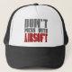 Não suje com MIM, e não suje com AIRSOFT. Um chapéu legal do camionista a vestir-se, para dizer todos para não sujar com você.